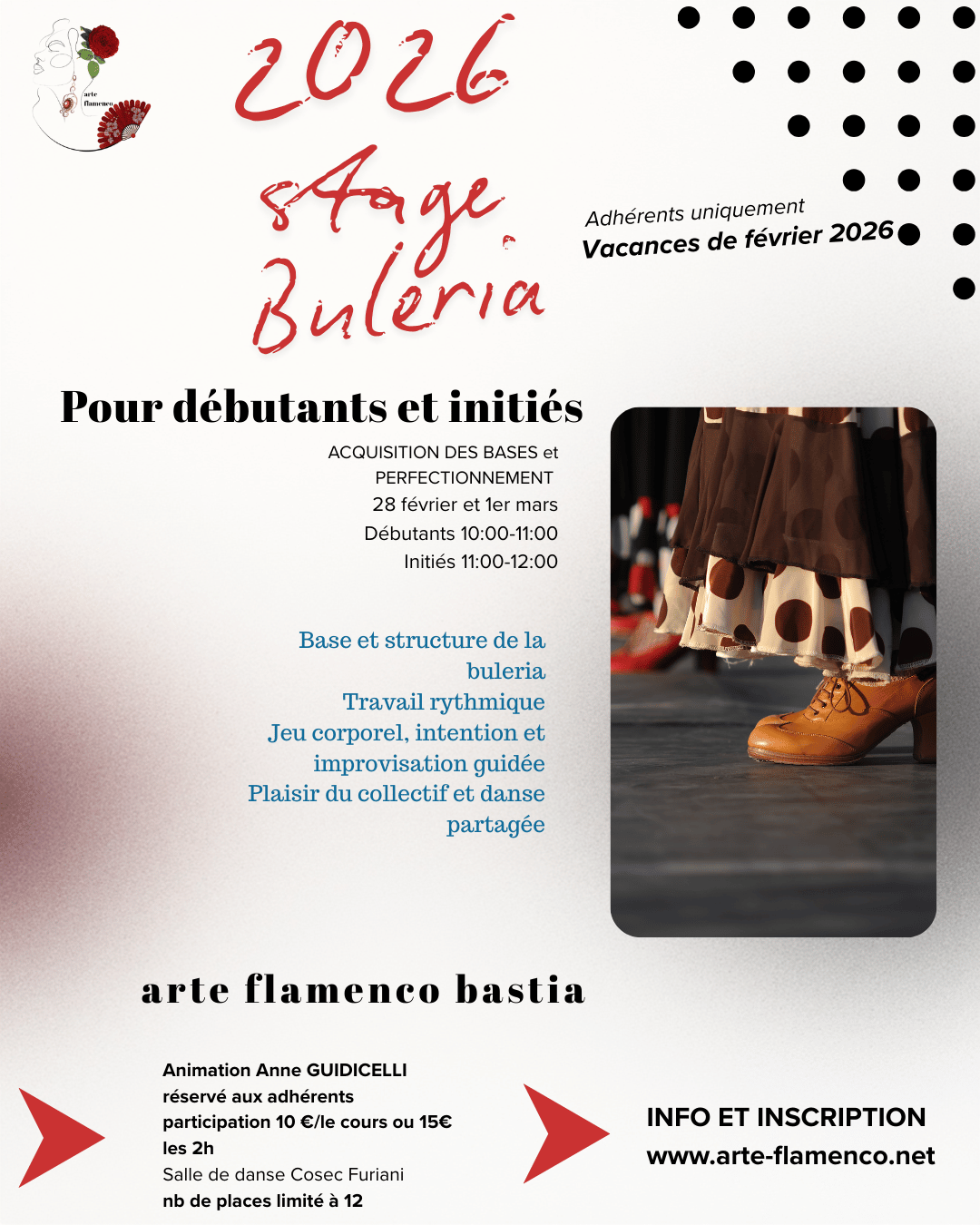 Pour rappel ces sessions sont comprises dans la cotisation annuelle, elles sont donc réservées aux adhérents arte flamenco à jour de leur cotisation 2025-2026.